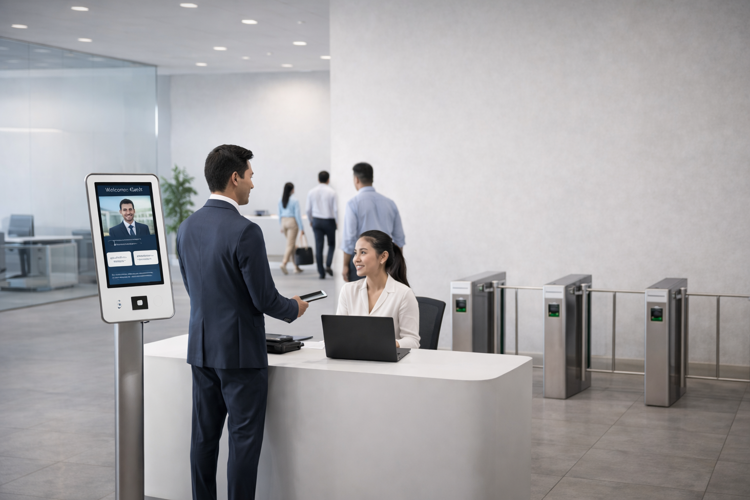 A long wait time, manual entry, or confused staff instantly signals inefficiency. For clients, candidates, or partners, this affects perception before the meeting even begins.